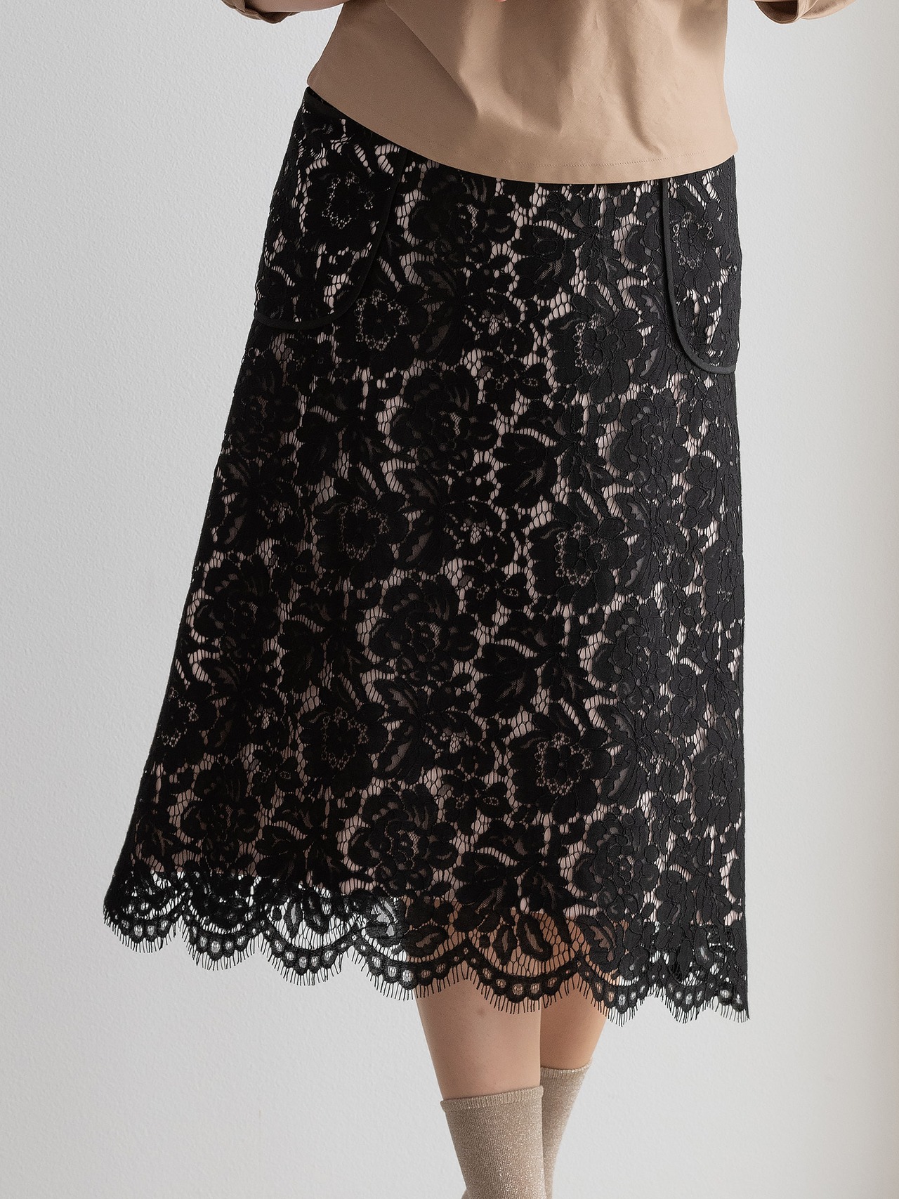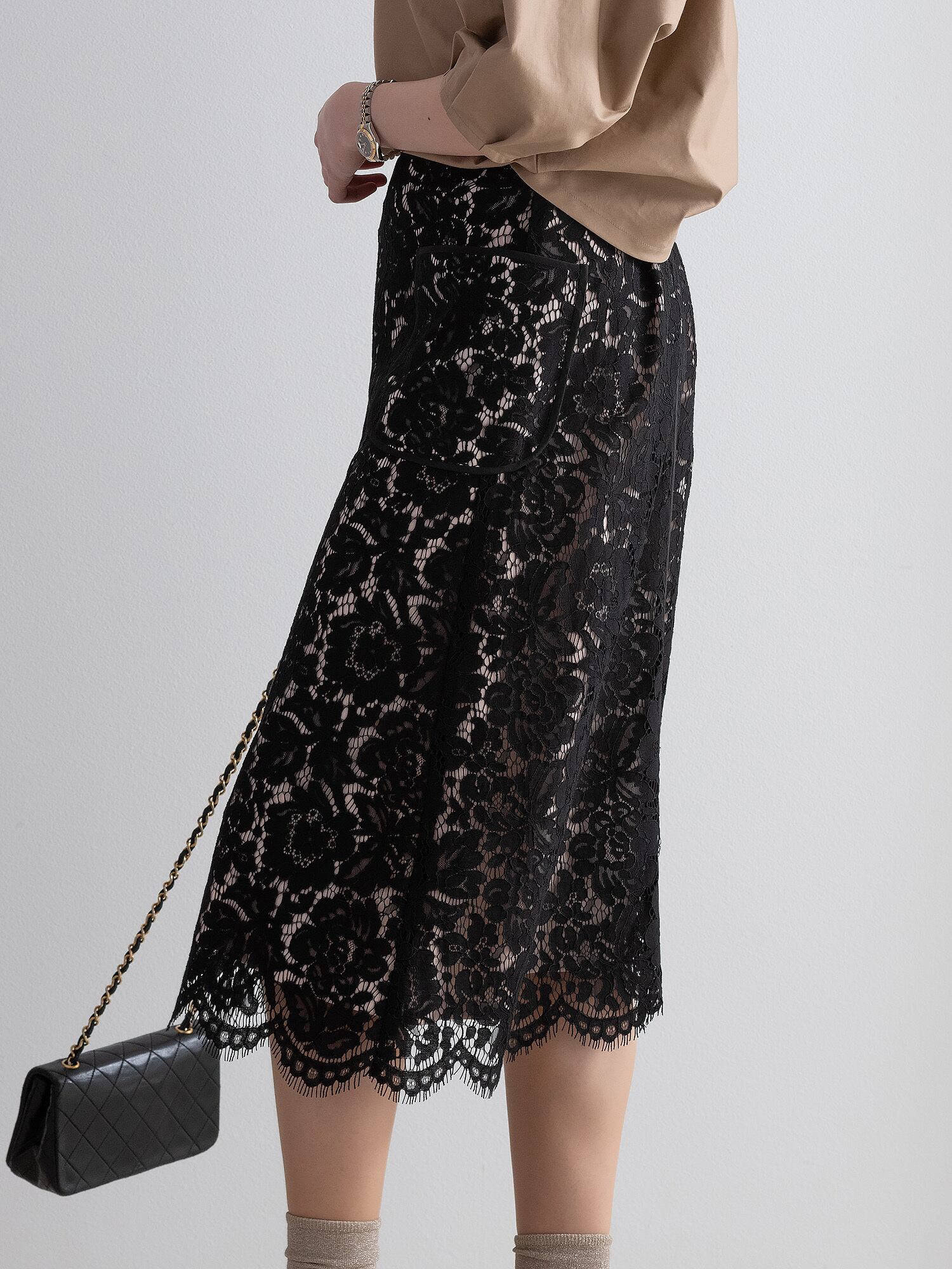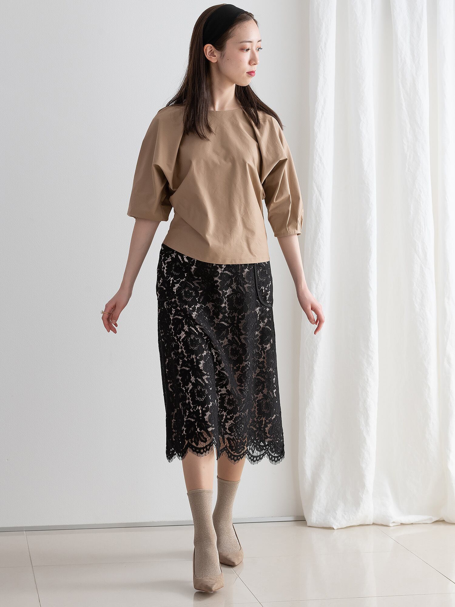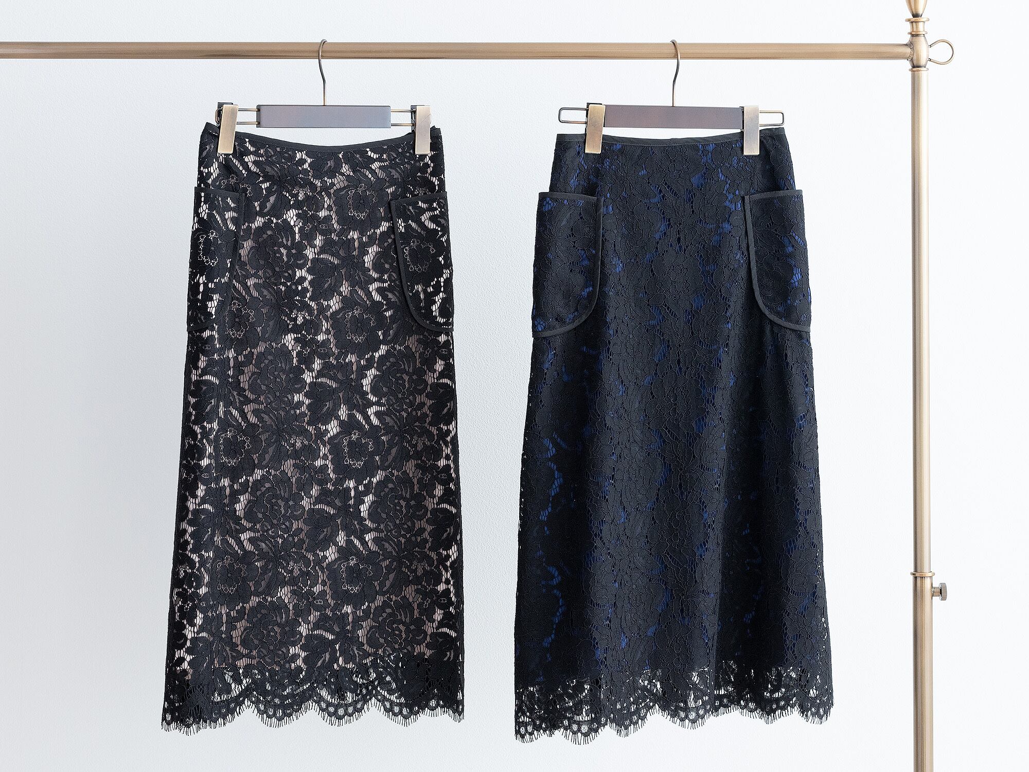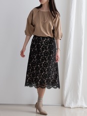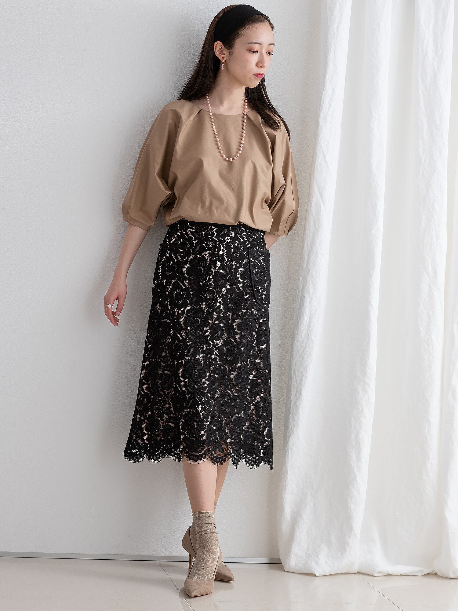 フルールレースのスカートが持つ幅広いコーディネイトの可能性。エレガントに、カジュアルに、着こなし変化を楽しめる大人スタイルです。