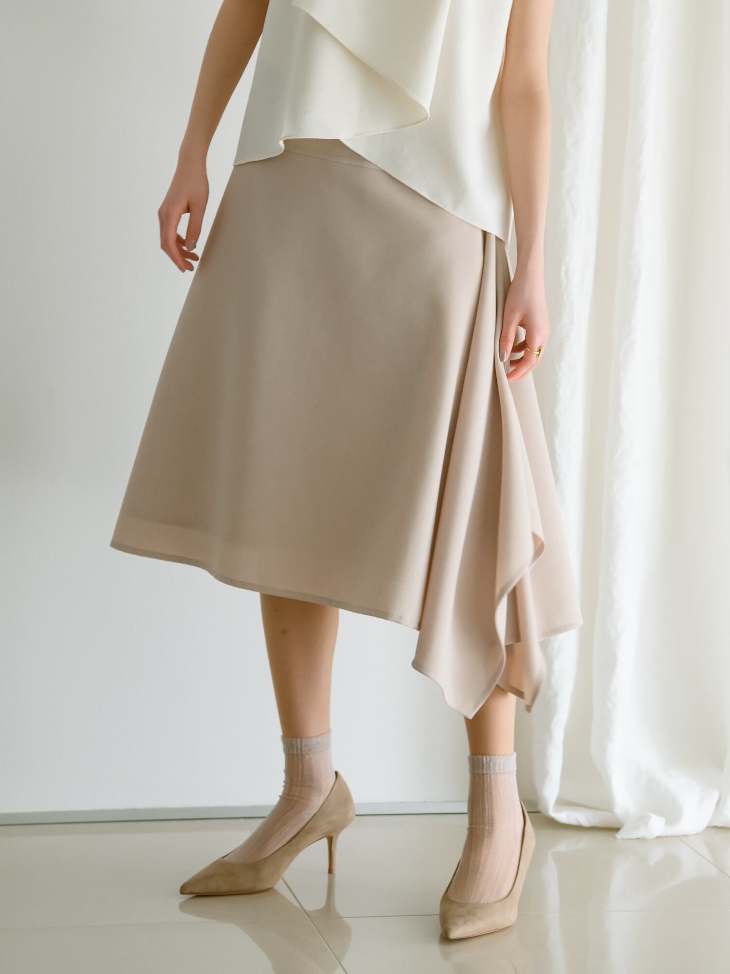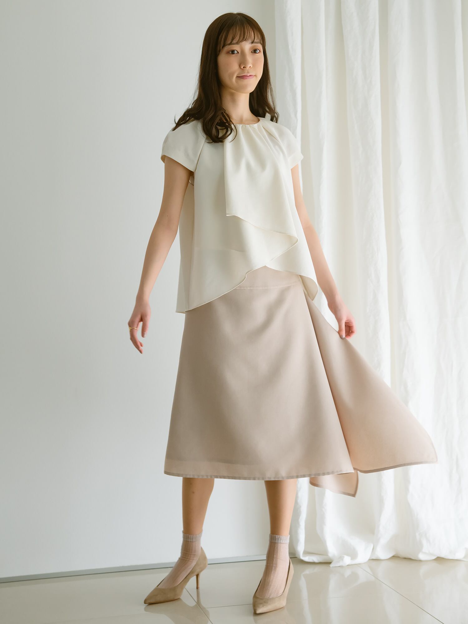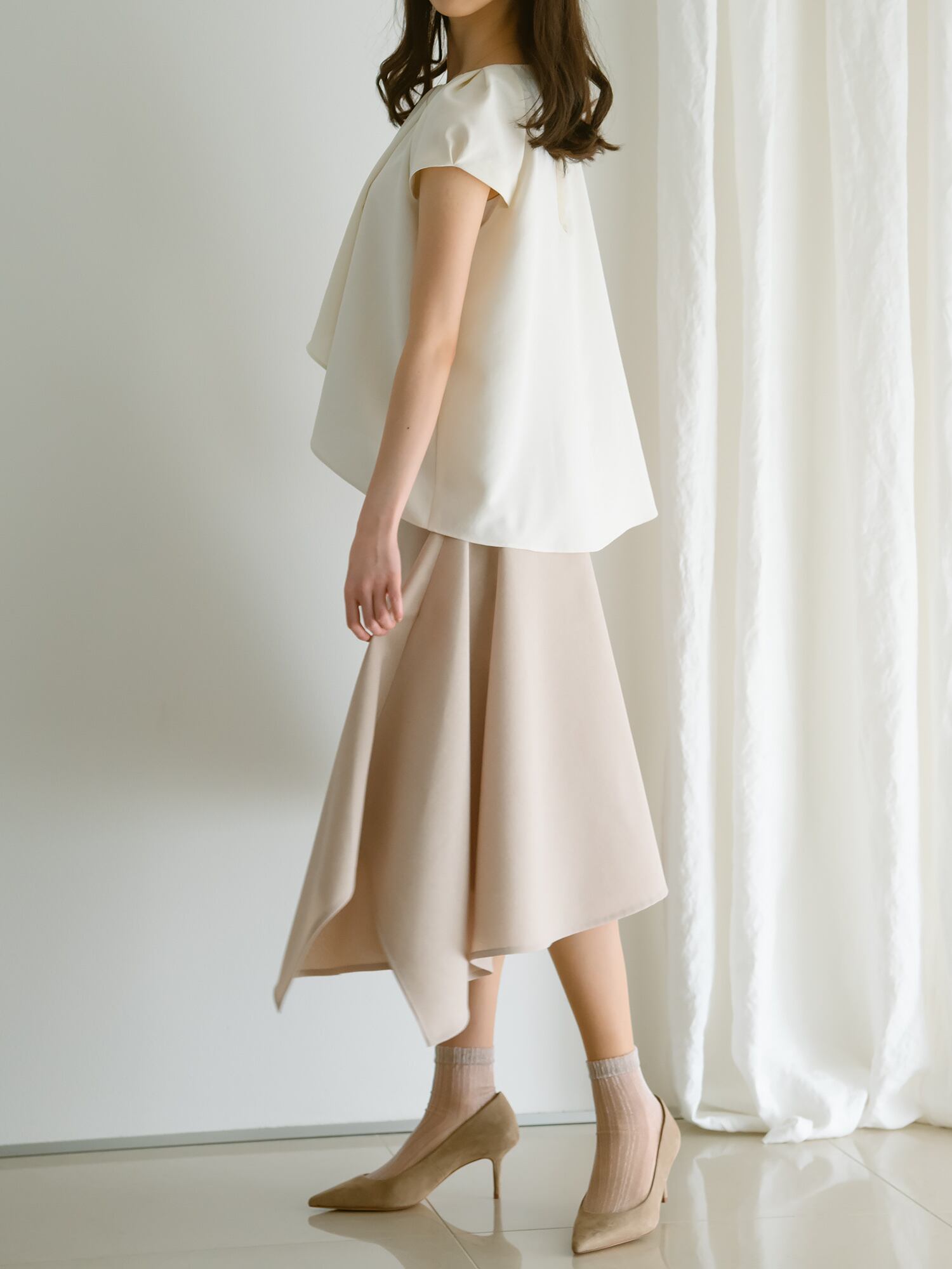 動く程に綺麗なラインを描くクチュールディテールのスカート