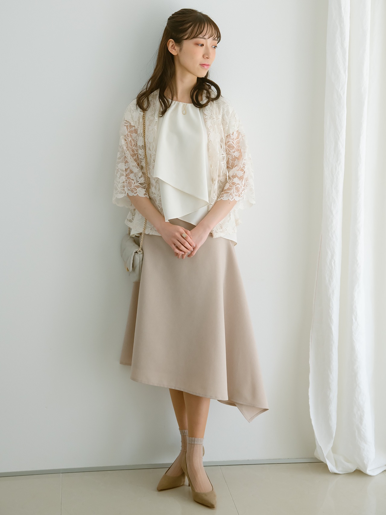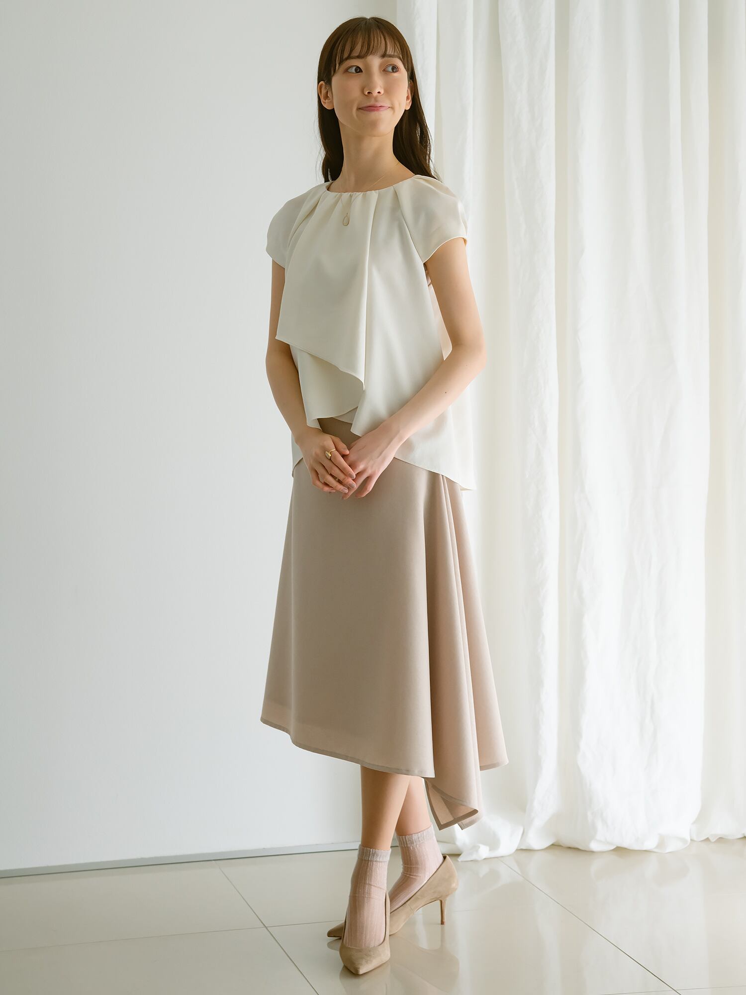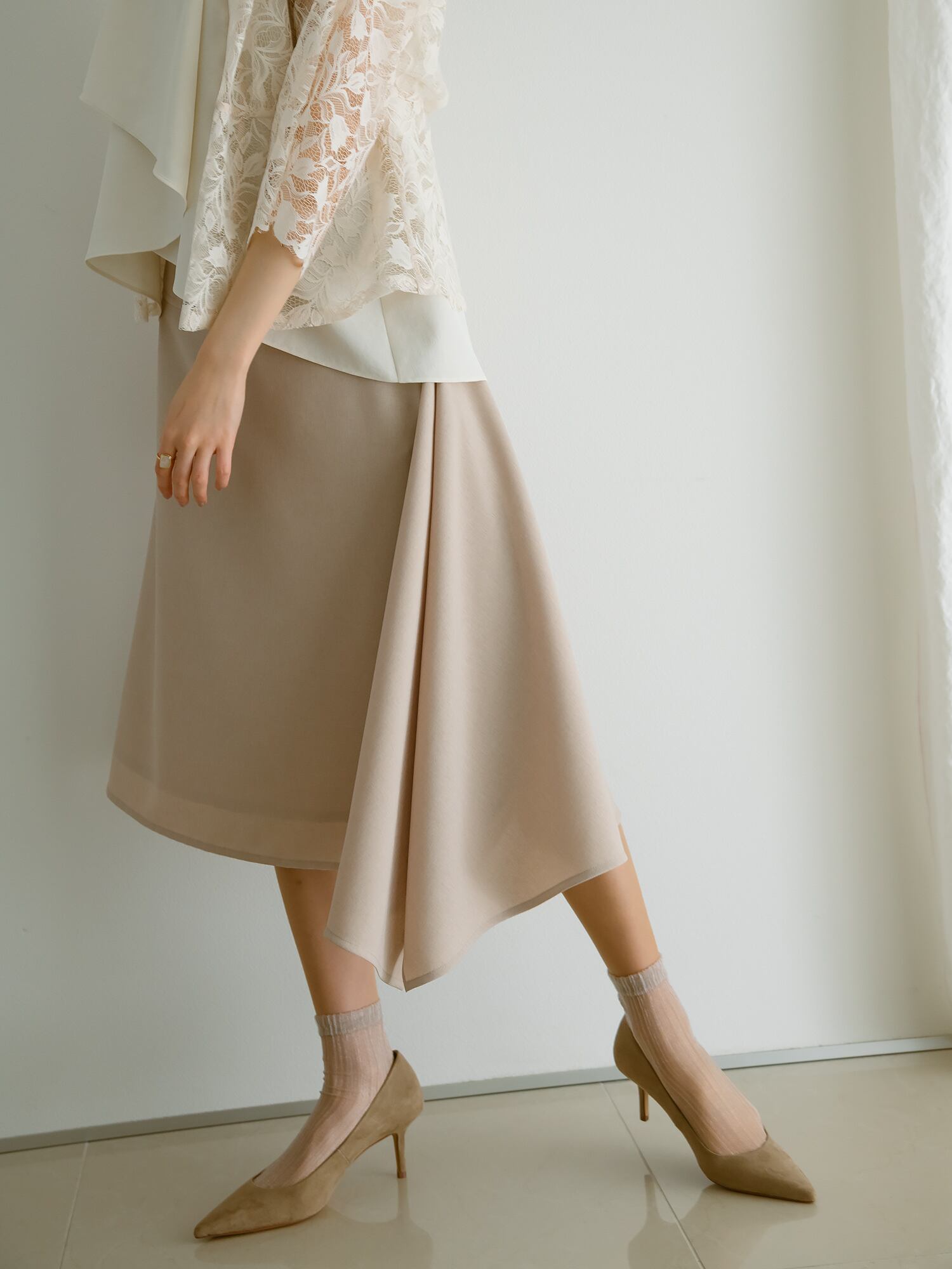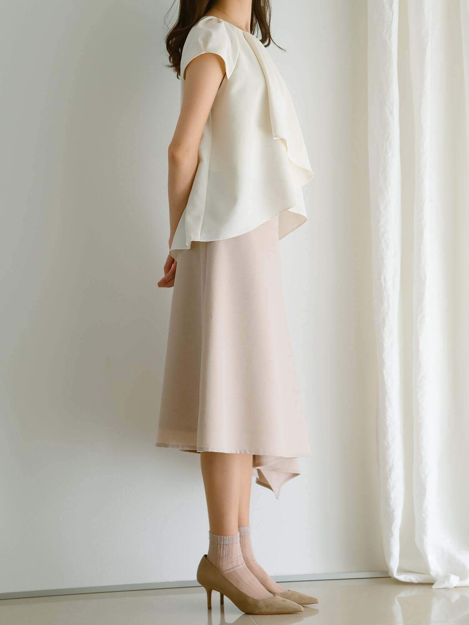 動く程に綺麗なラインを描くクチュールディテールのスカート